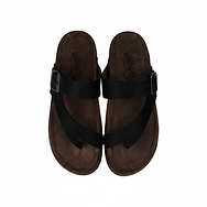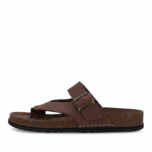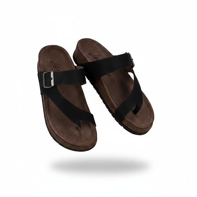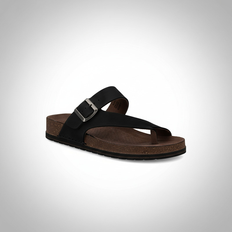 Walk & Fly Cannes 7447 50270 men's Bio toe sandals in black. Toe closure with adjustable buckle back, sole height of 3 cm, rubber sole, outer material leather and padded and breathable insole.