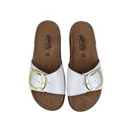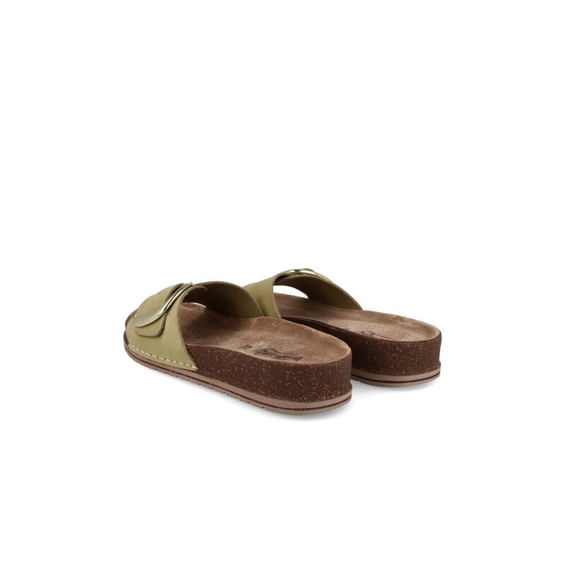 Walk & Fly Bambola 7447 50530 women's Bio casual sandal in green. Shovel closure with adjustable buckles, sole height of 3 cm, rubber sole, outer material leather and padded leather insole. Sandals sewn by hand to the sole for greater durability of the product.