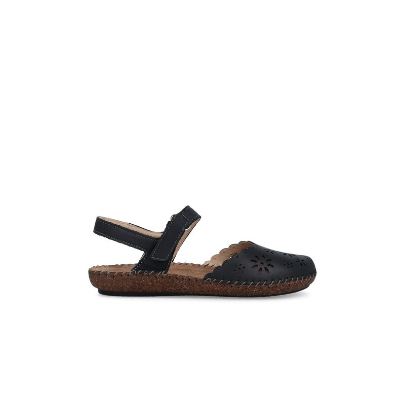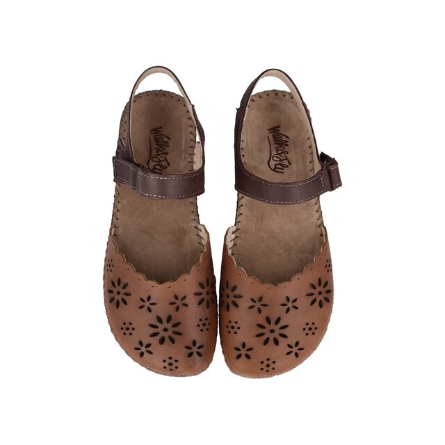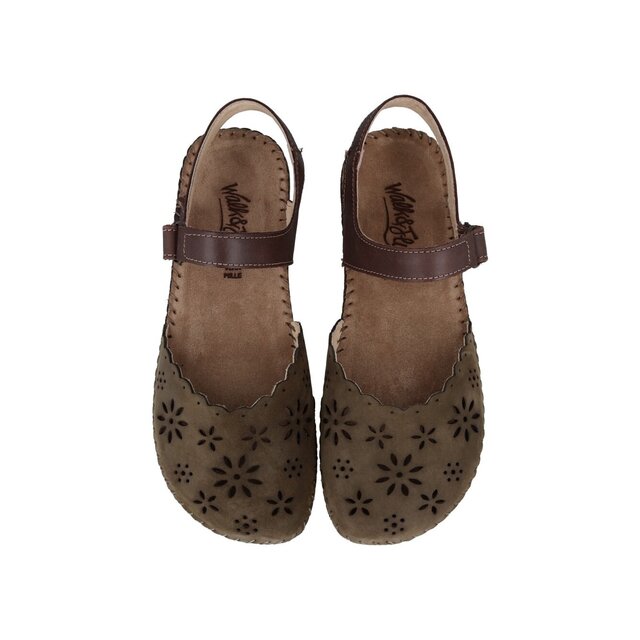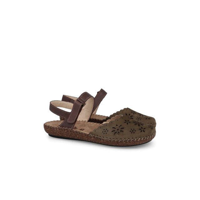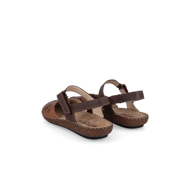 Nerano Walk & Fly 7261 50411 A5 closed sandals for women in brown. Features: die-cut sandals with velcro fastener, heel height 2 cm, polyurethane sole, hand-sewn on the sole for durability and flexibility, upper material: leather, with leather cushioned insole.