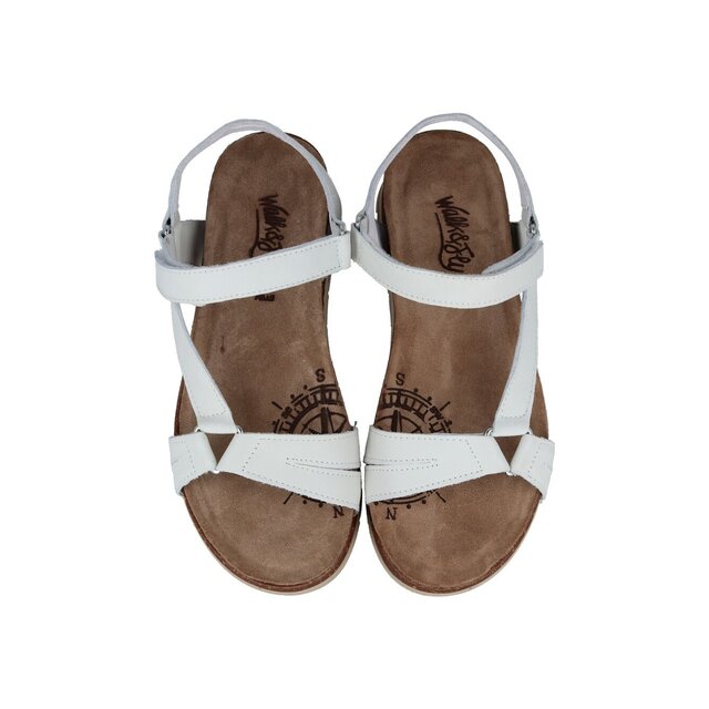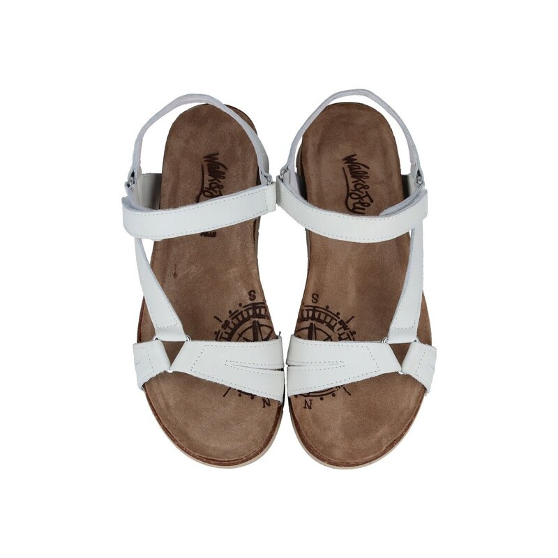 Walk & Fly Miramare 8352 21620 A5 white sandals for women, adjustable buckle fastening, 4.5 cm wedge with serrated rubber sole, hand-stitched for durability and flexibility, premium leather outer material, leather inner lining and padded leather insole for maximum comfort.