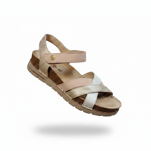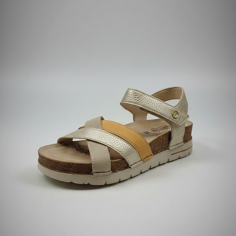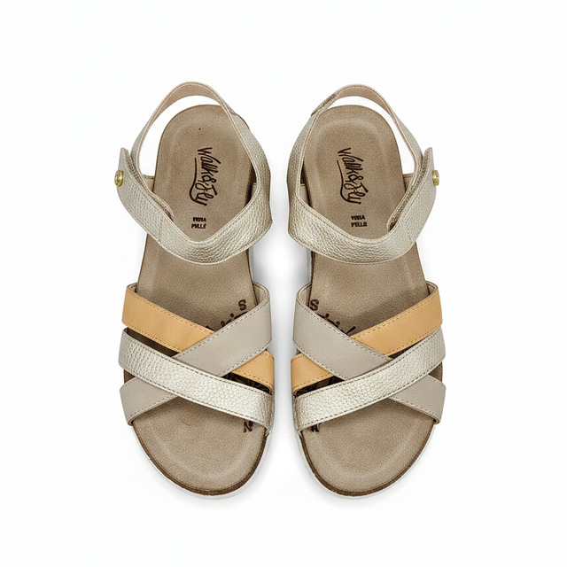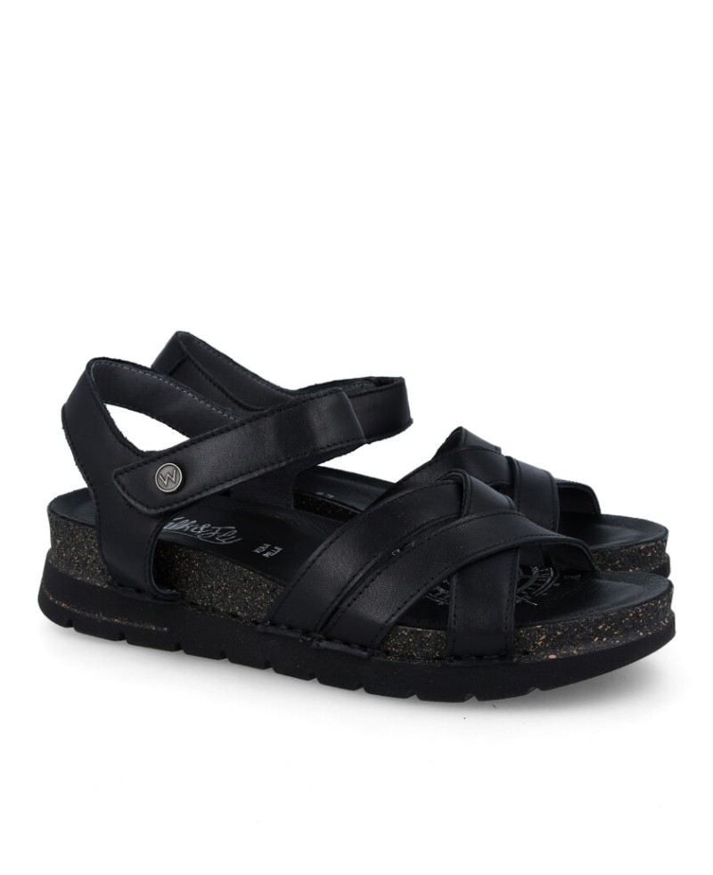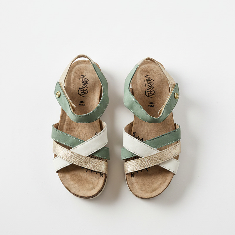 Walk & Fly San Telmo 8352 50720 A5 women's wedge sandals, with velcro closure, 4.5 cm low wedge, polyurethane sole, handcrafted for durability and flexibility, premium cowhide leather upper, soft lining and comfortable cushioned insole.