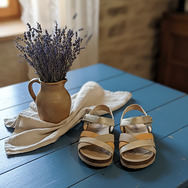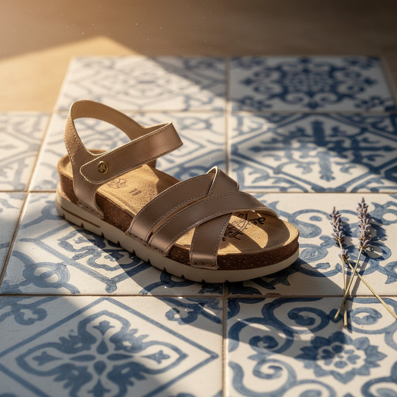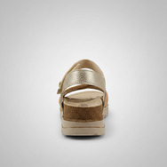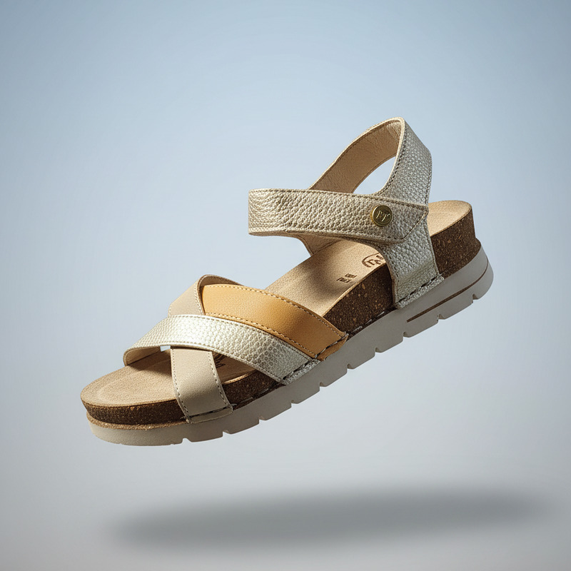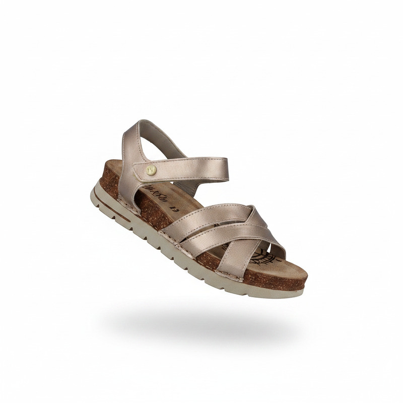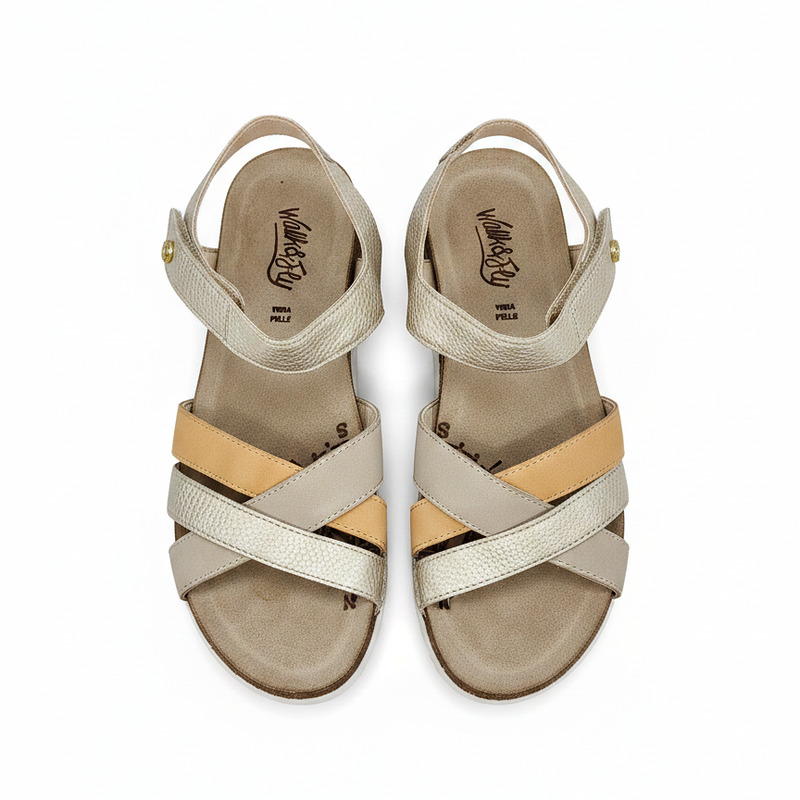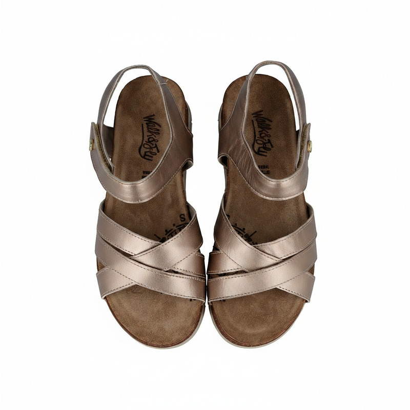 Shine with Handcrafted Comfort. Dare to stand out with the Walk & Fly sandal in a sleek metallic hue. Crafted from premium cowhide leather and hand-stitched for durability and flexibility, this sandal combines style and comfort. Its soft lining and cushioned footbed pamper your feet, while the hook-and-loop closure offers a secure fit. The 4.5 cm polyurethane sole gives you the perfect height to look radiant without sacrificing comfort.