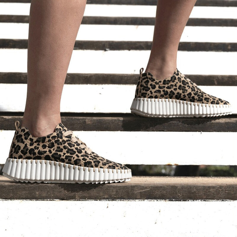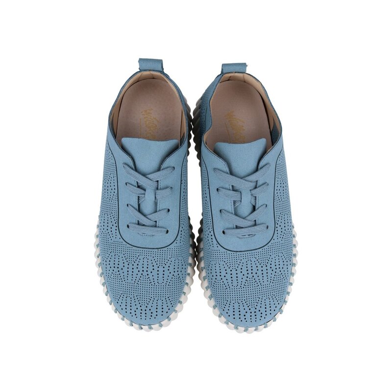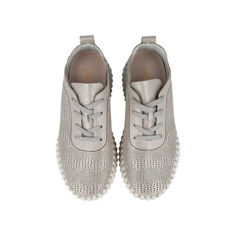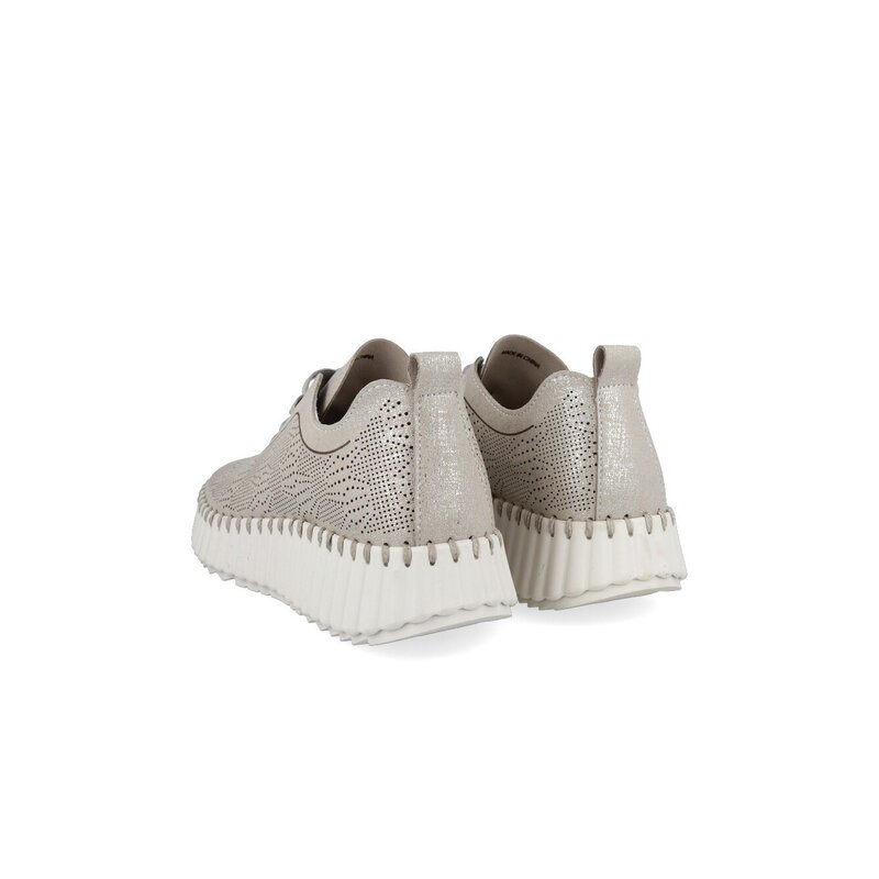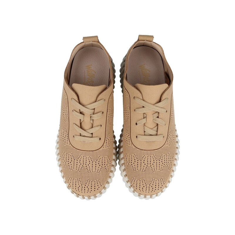 Zapato deportivo Walk & Fly Astrid AH-9837K A5para mujer en color kaki. Características: zapatillas con cuña baja con cierre con cordones al tono, altura de cuña 4 cm, cosidas a mano a la suela para aportar mayor flexibilidad y durabilidad, material exterior de microfibra suave, plantilla acolchada y extraíble.