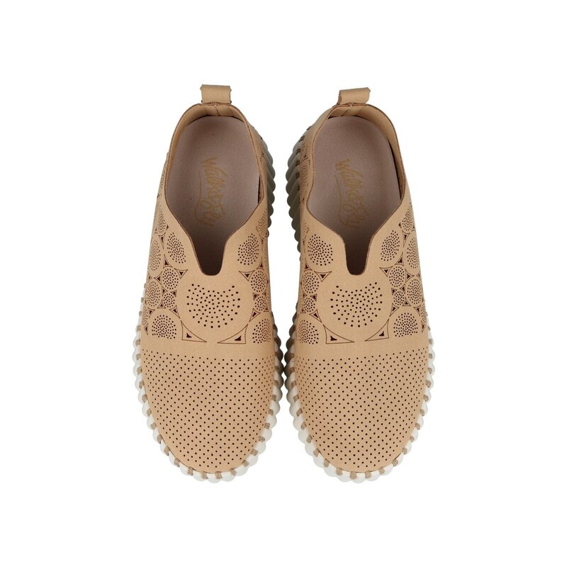 Mocasín troquelado Walk & Fly Frida AH-9936B A5 para mujer en color naranja. Características: zapato cerrado, cosidas a manualmente para una mayor adaptabilidad al pie y mayor durabilidad, diseñado con troquelado y parte lisa, con escote en el empeine, altura de piso 4 cm, material exterior microfibra, plantilla extraíble y acolchada.