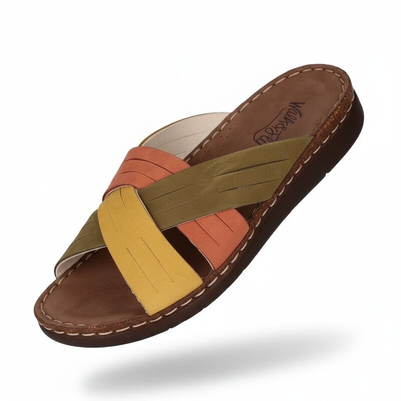 Descubre la comodidad sin igual y el estilo alegre de las Sandalias pala Walk & Fly Knokke 3861 45330 A5. Confeccionadas en suave piel vacuna en una vibrante combinación de taupe, verde y rosa, estas sandalias de diseño slip-on te proporcionarán una sensación de bienestar inigualable para tus días de verano.