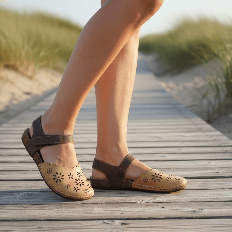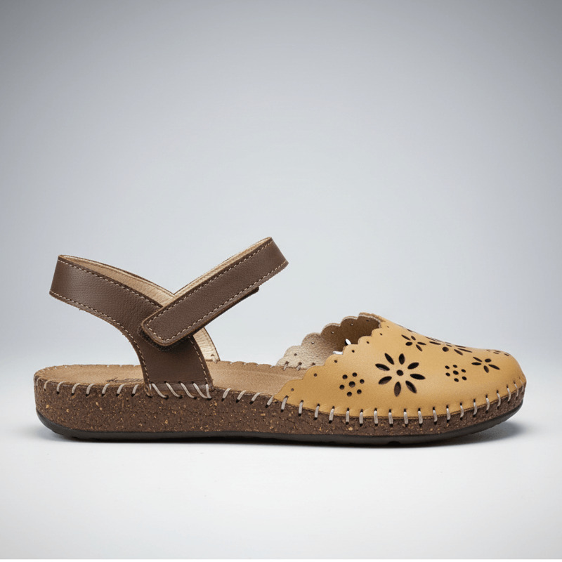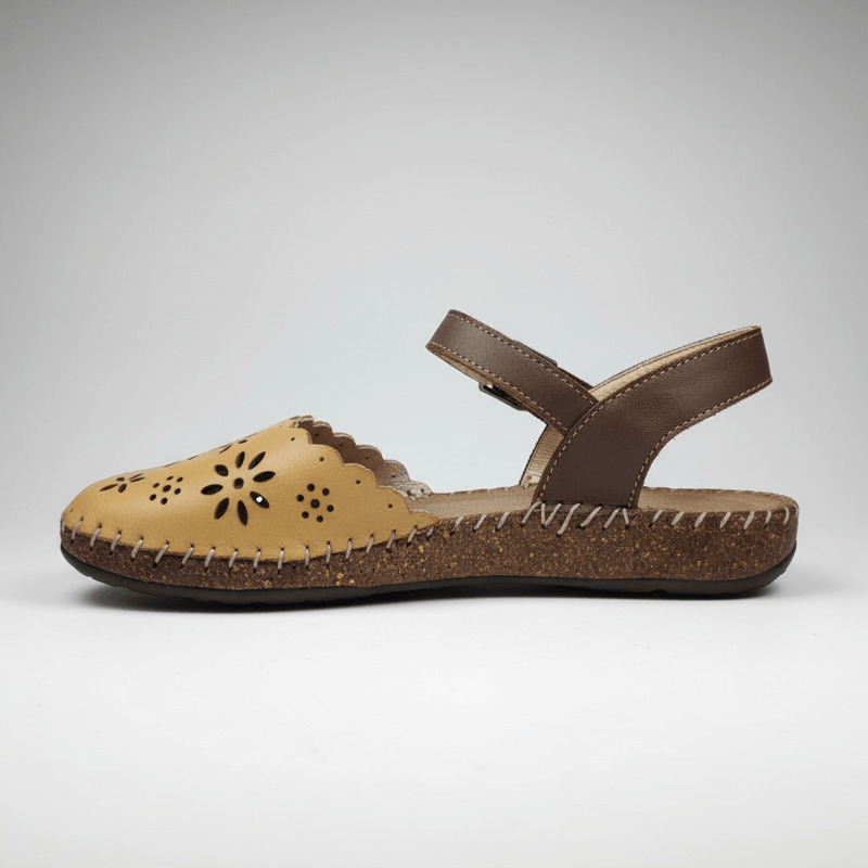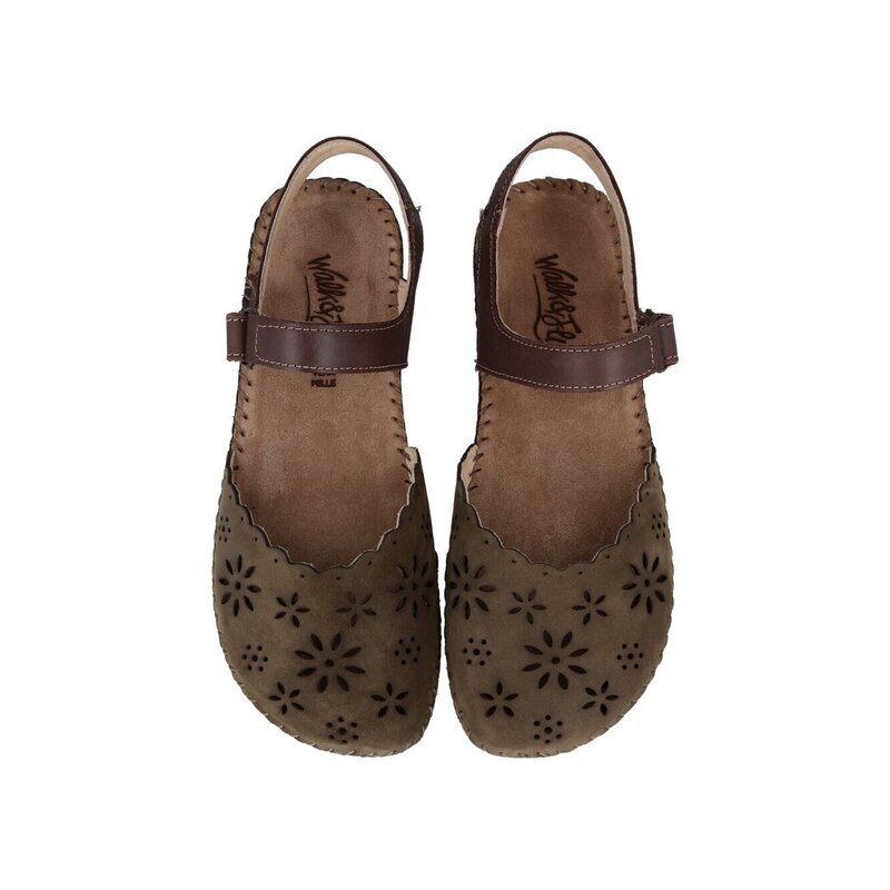 Sandalias cerradas Nerano Walk & Fly 7261 50411 A5 para mujer en color marrón. Características: sandalias troqueladas con cierre de velcro, altura de talón 2 cm, suela de poliuretano, cosidas a mano a la suela para aportar mayor durabilidad y flexibilidad, material exterior de piel, con plantilla acolchada de piel.