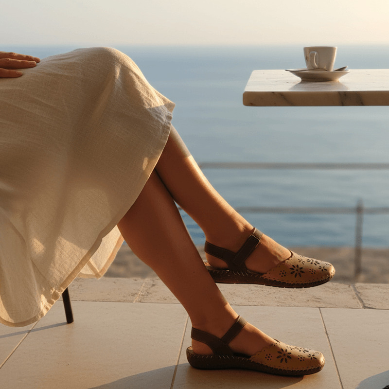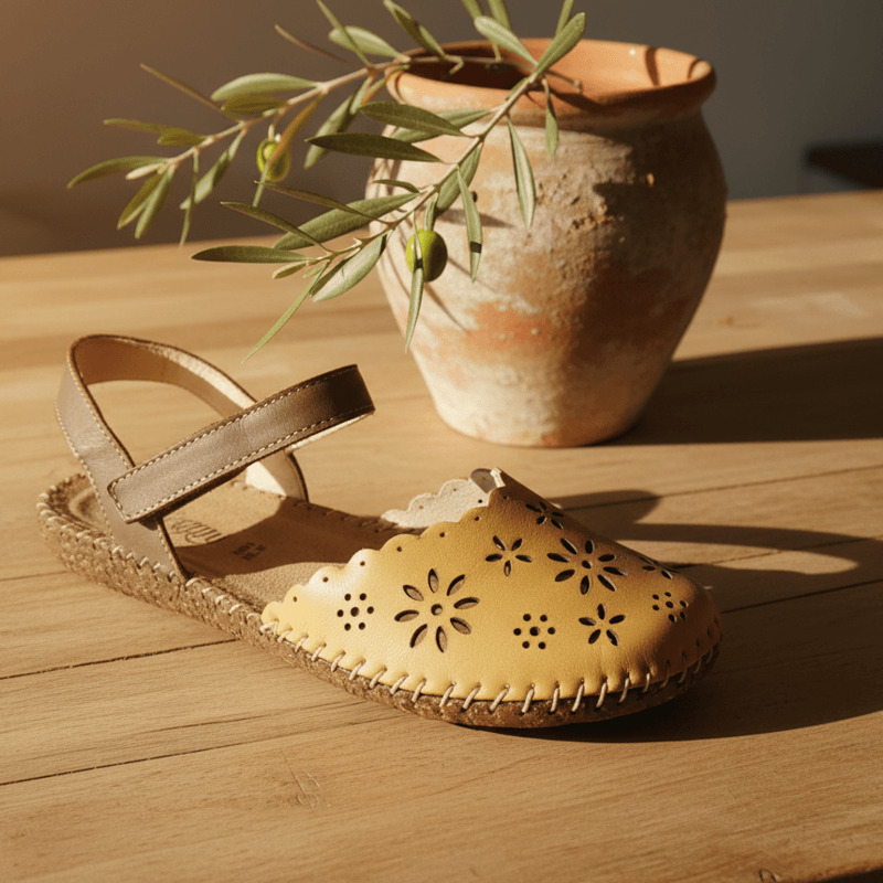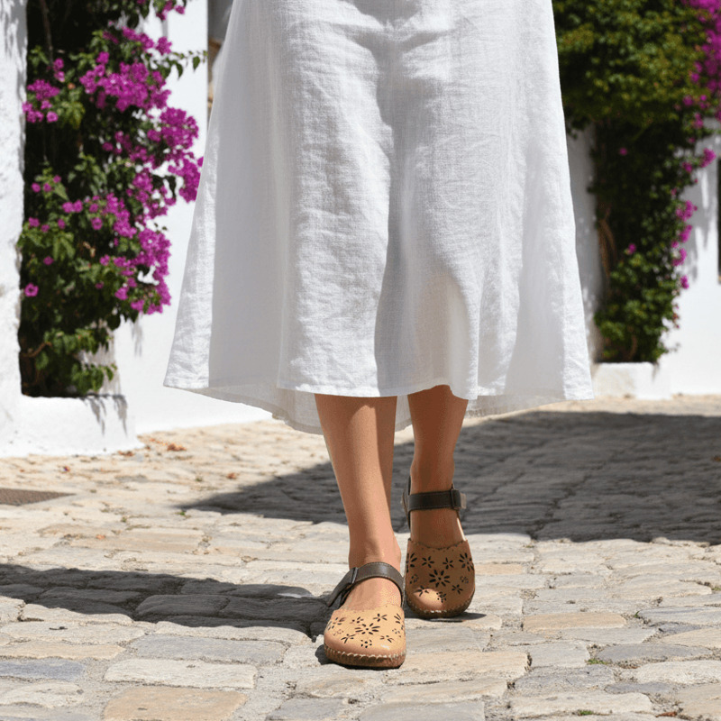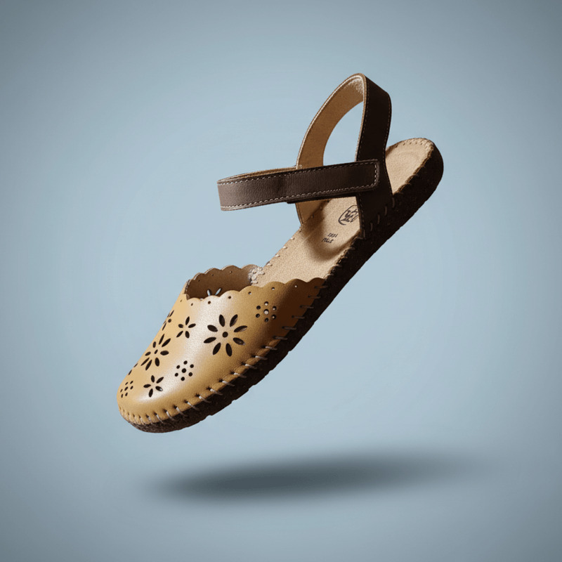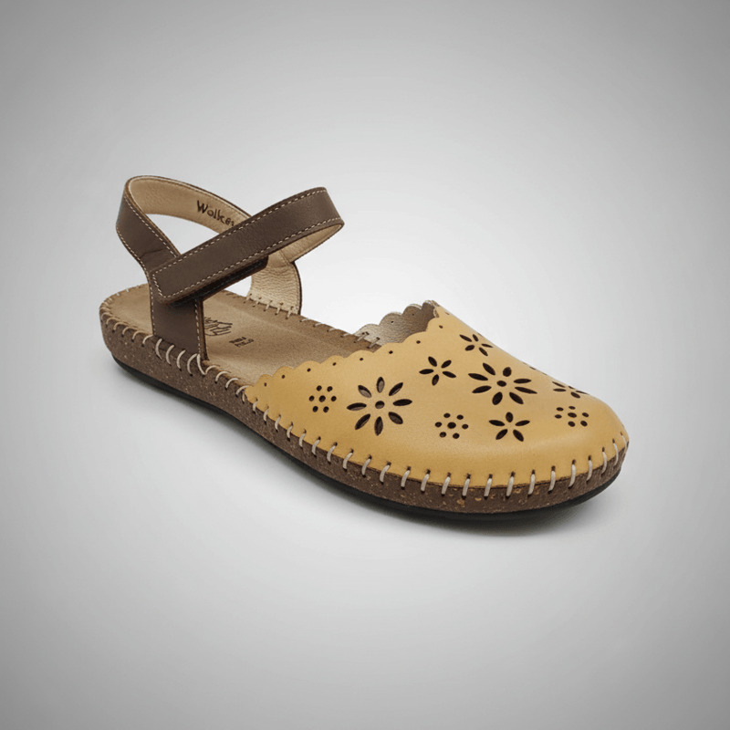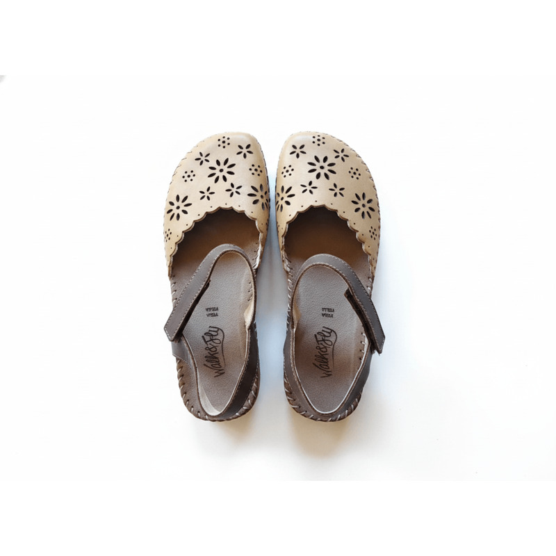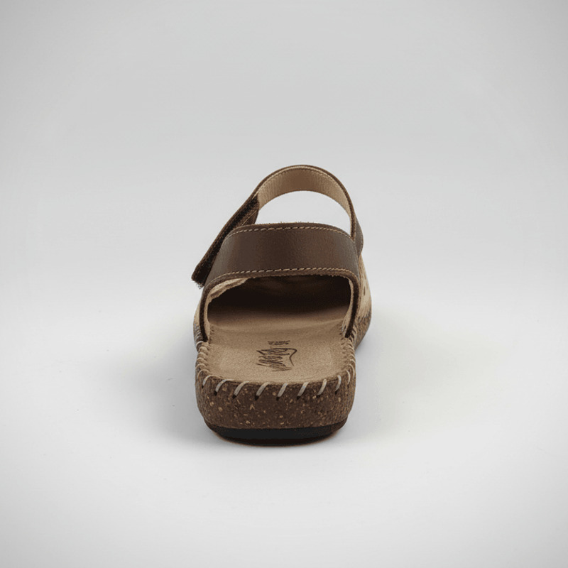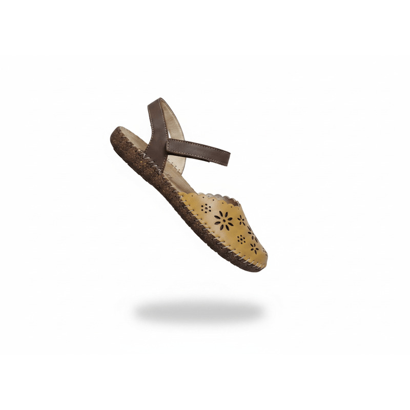 Estilo Natural y Confort Artesanal. Descubre la calidez de la sandalia Walk & Fly en color marrón. Confeccionada en piel de alta calidad con un elegante diseño troquelado, esta sandalia combina estilo y comodidad. Su cierre de velcro asegura un ajuste perfecto, mientras que la plantilla acolchada de piel mima tus pies en cada paso. La suela de poliuretano de 2 cm te proporciona una pisada ligera y flexible, reforzada por el cosido a mano que garantiza mayor durabilidad.