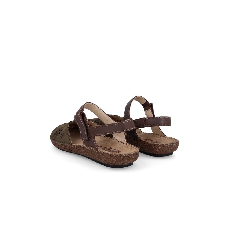 Sandalias cerradas Nerano Walk & Fly 7261 50411 A5 para mujer en color marrón. Características: sandalias troqueladas con cierre de velcro, altura de talón 2 cm, suela de poliuretano, cosidas a mano a la suela para aportar mayor durabilidad y flexibilidad, material exterior de piel, con plantilla acolchada de piel.