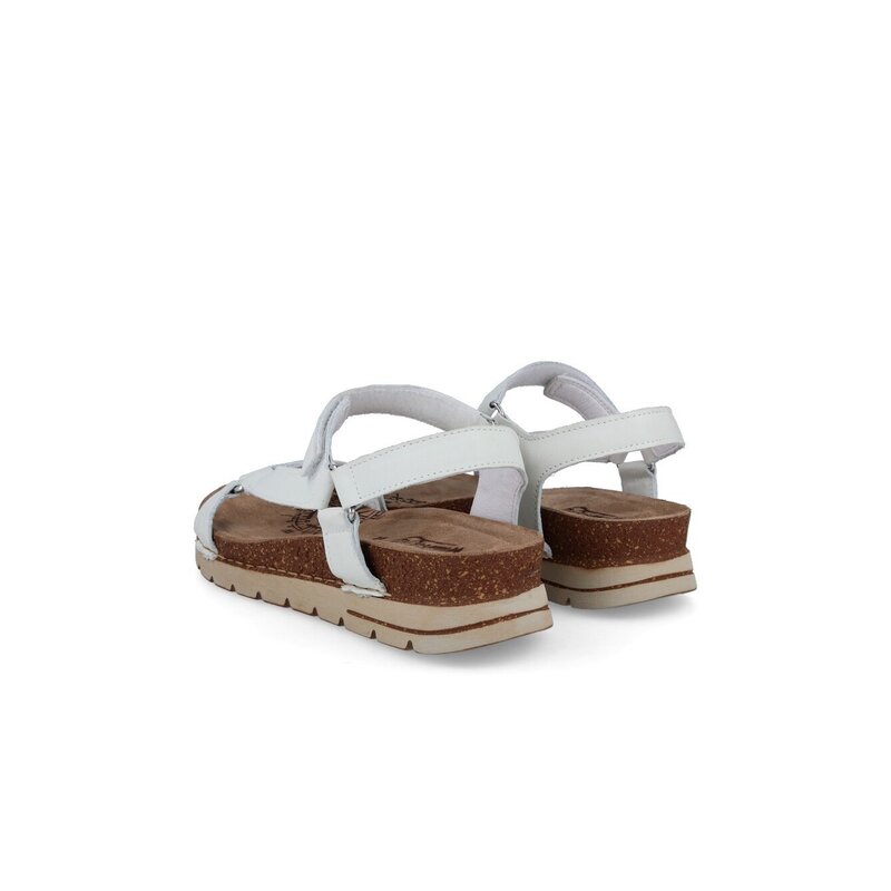 Sandalias blancas Walk & Fly Miramare 8352 21620 A5 para mujer, cierre con velcro ajustable, cuña de 4'5 cm con suela dentada de goma, cosidas a mano para mayor durabilidad y flexibilidad, material exterior de piel de primera calidad, forro interior de piel y plantilla acolchada de máximo confort de piel.
