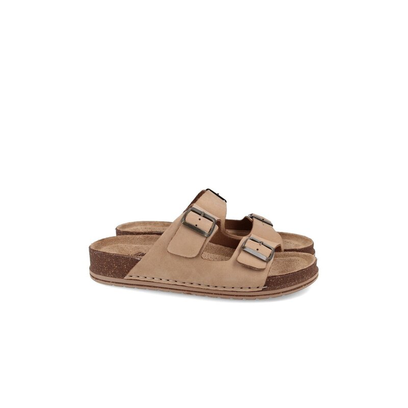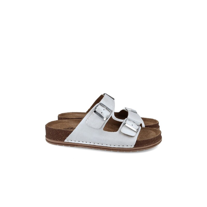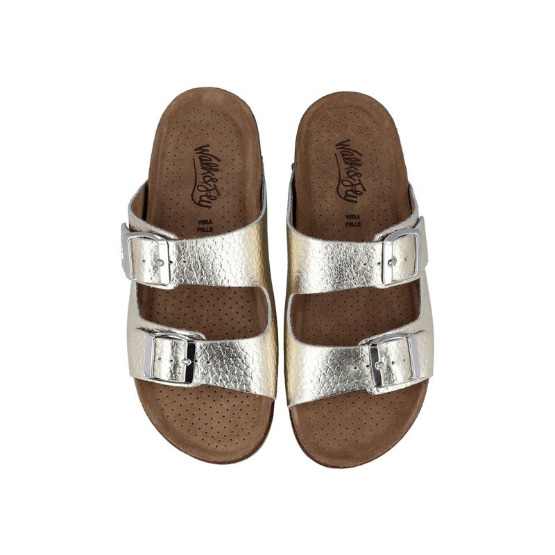 Sandalia Bio mujer Walk & Fly Ramsgate 7447 47810, sandalias de pala con hebillas metálicas ajustables, sandalias casual Bio con suela de 3 cm de altura, suela de poliuretano, material exterior piel vacuna, forro interior de piel suave y plantilla acolchada de piel cosida a mano a la suela.